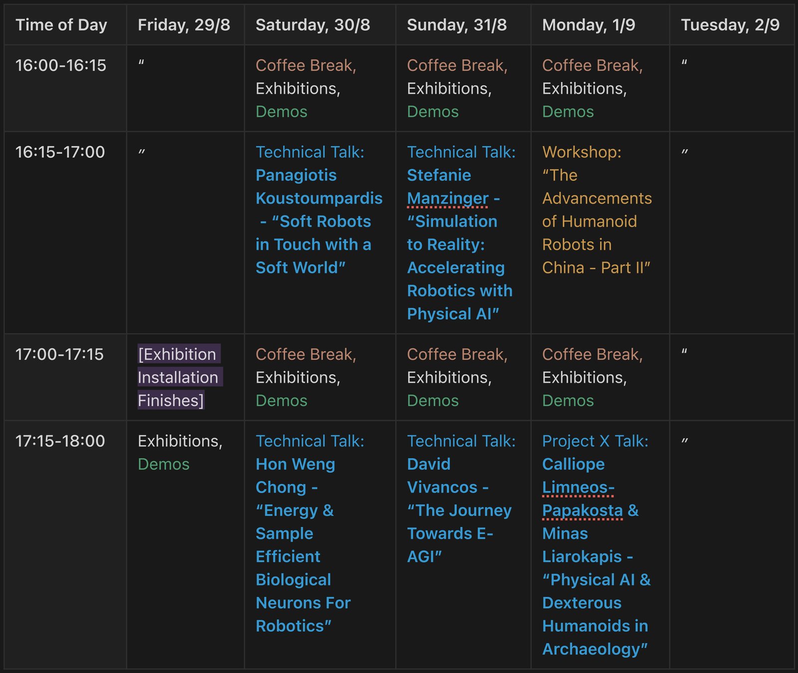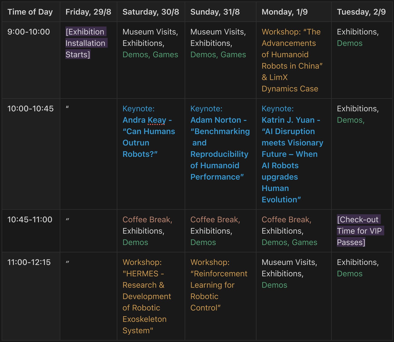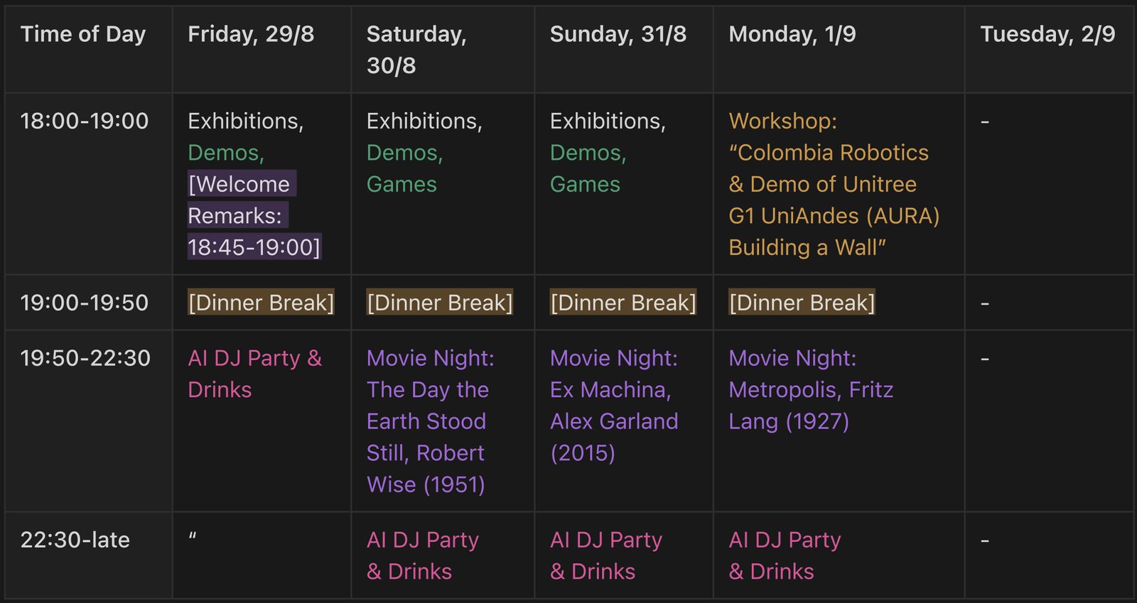 Join us for Humanoid Related Talks, Workshops, Exhibitions, Demos, Games, Movie Nights, Parties
